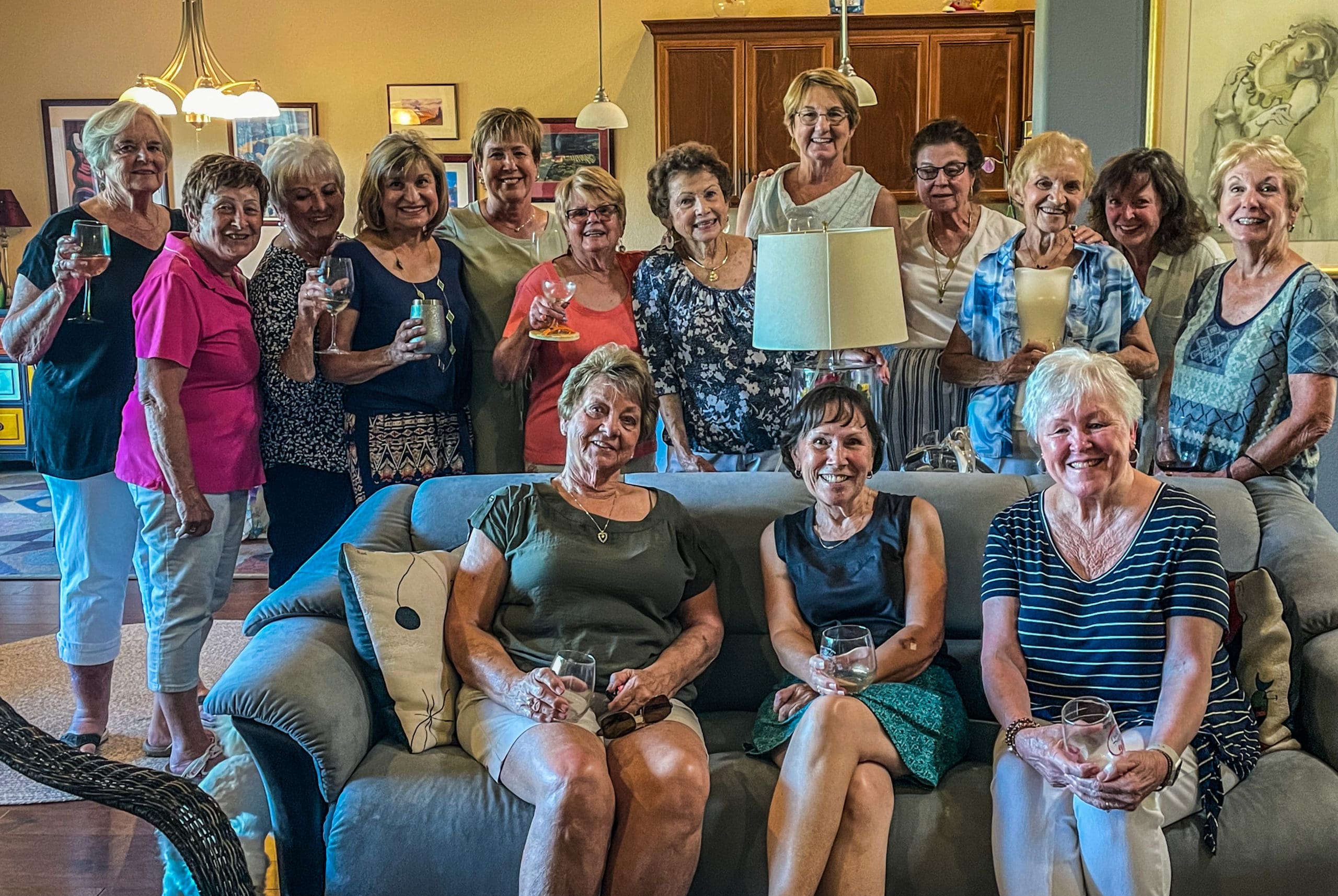 16 EPWC members gathered at the home of Ann Grossman for some sips of wine and dips of snack goodies. Lots of laughs and smiles all around.