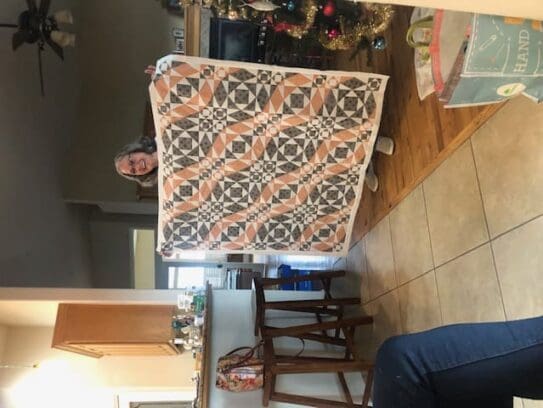 On January 4, 2023 the Piecemakers met at Rosenelles to share & plan our 2023 meetings. Rosenelle & Kelly both had been busy and had some lovely items to share with us. Kelly did some work with discharging colors and made some stunning quilts. Rosenelle worked her magic her embroidery machine and made some lovely ornaments. Check out her beautiful angel. WOW!