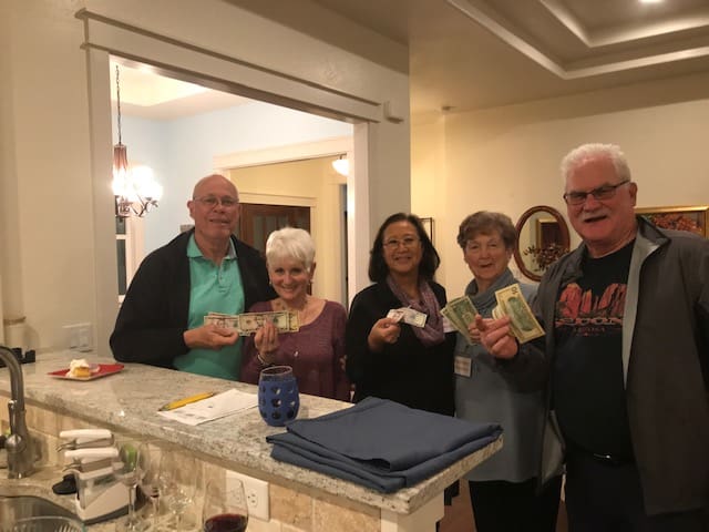 The Couples 3-13 Group kicked off 2023 on February 18 at the homes of Lynn Baker, Nancy Erickson and Sandi Smith. New member Barbara Weber and her husband Steve attended for the first time which gave them the opportunity to meet new people, share some great food and learn a new card game. Several couples shared both winning and losing scores this time! Low scores at Lynn's house were the hostess herself with 34 points followed by Don Brown-46, Jim Hyden-53, Bernie Quiring-75 and Connie Quiring had the high score. At the Ericksons, John Buckley scored low with 66 points followed by Brigitte Lemmerman-71, Aleli Lawson-88, Bruce Lemmerman-92 and Paula Buckley with a high score of 189. Michelle Harter came away with the low score of 53 points at the Smiths. with Teresa Allen-64, Bruce Harter-81, Susan Watson-88 following and Charlie Allen scored a high of 178. Currently the group has 33 couples involved. We have 3 homes that host each month. We gather the third Saturday evening every month at 6:00 pm, have a nice happy hour visit, share a great dinner, play a "mean" card game and enjoy each other's company. It's the only activity group in the Women's Club that the husbands/ partners are a part of and a great way for them to meet each other. If you are interested in joining the fun, please contact Aleli Lawson.
