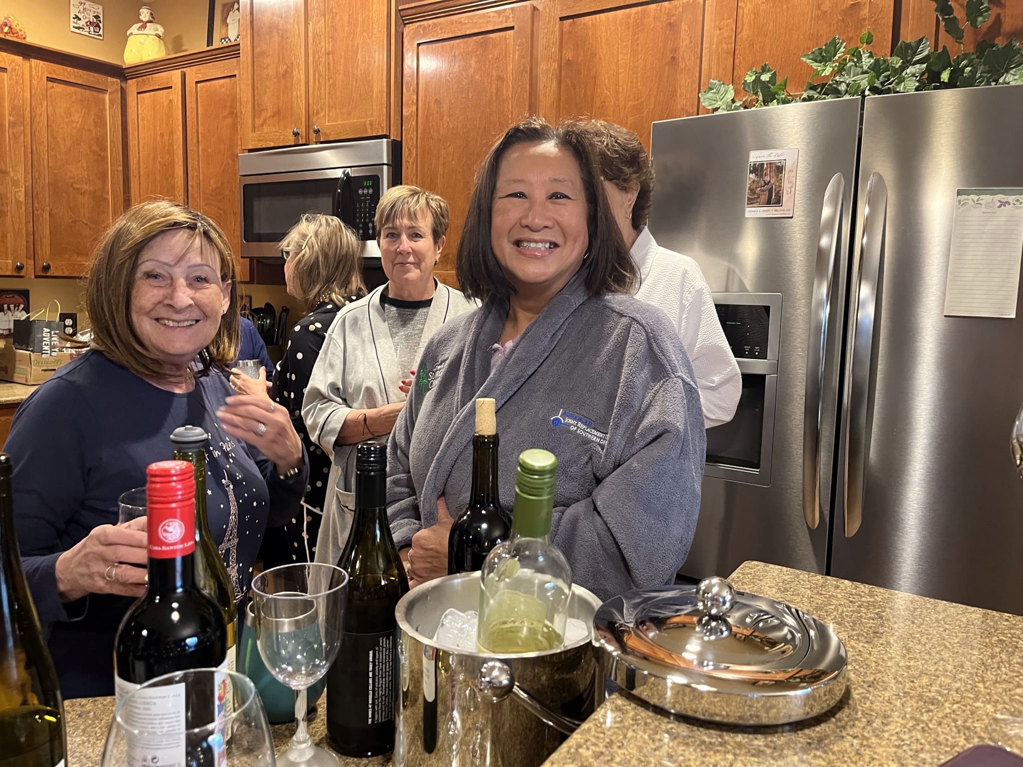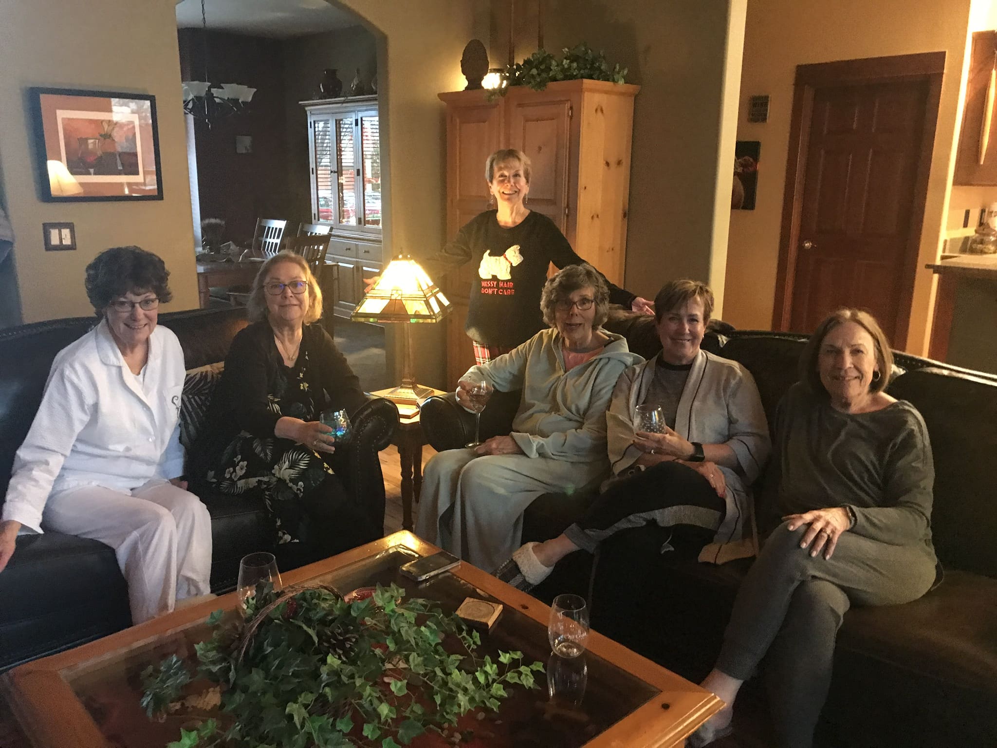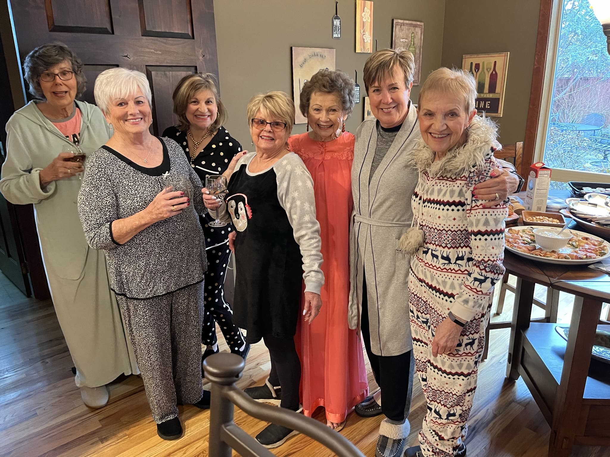 Nancy Randolph hosted 20 ladies in her home February 23 for Sip and Dip. All the attendees wore pajamas, robes & house slippers! Dame Ida Tolmie outclassed us all and wore her mother’s 70 year old negligee set. Of course the wine flowed, we noshed on snacks and shared lots of laughs. If you’re interested in joining this lively activity group, contact Brigitte Lemmerman to get on the list.