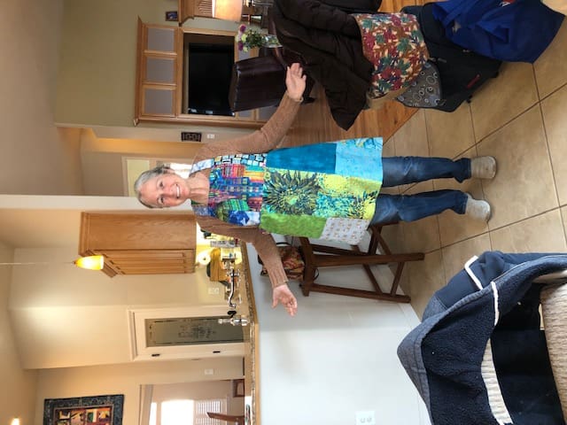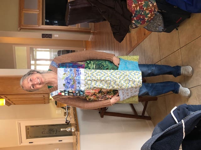 Kelly models her new apron.