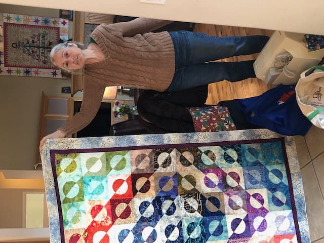 Kelly’s new quilt with an amazing pattern and all blocks done with discharging the color.