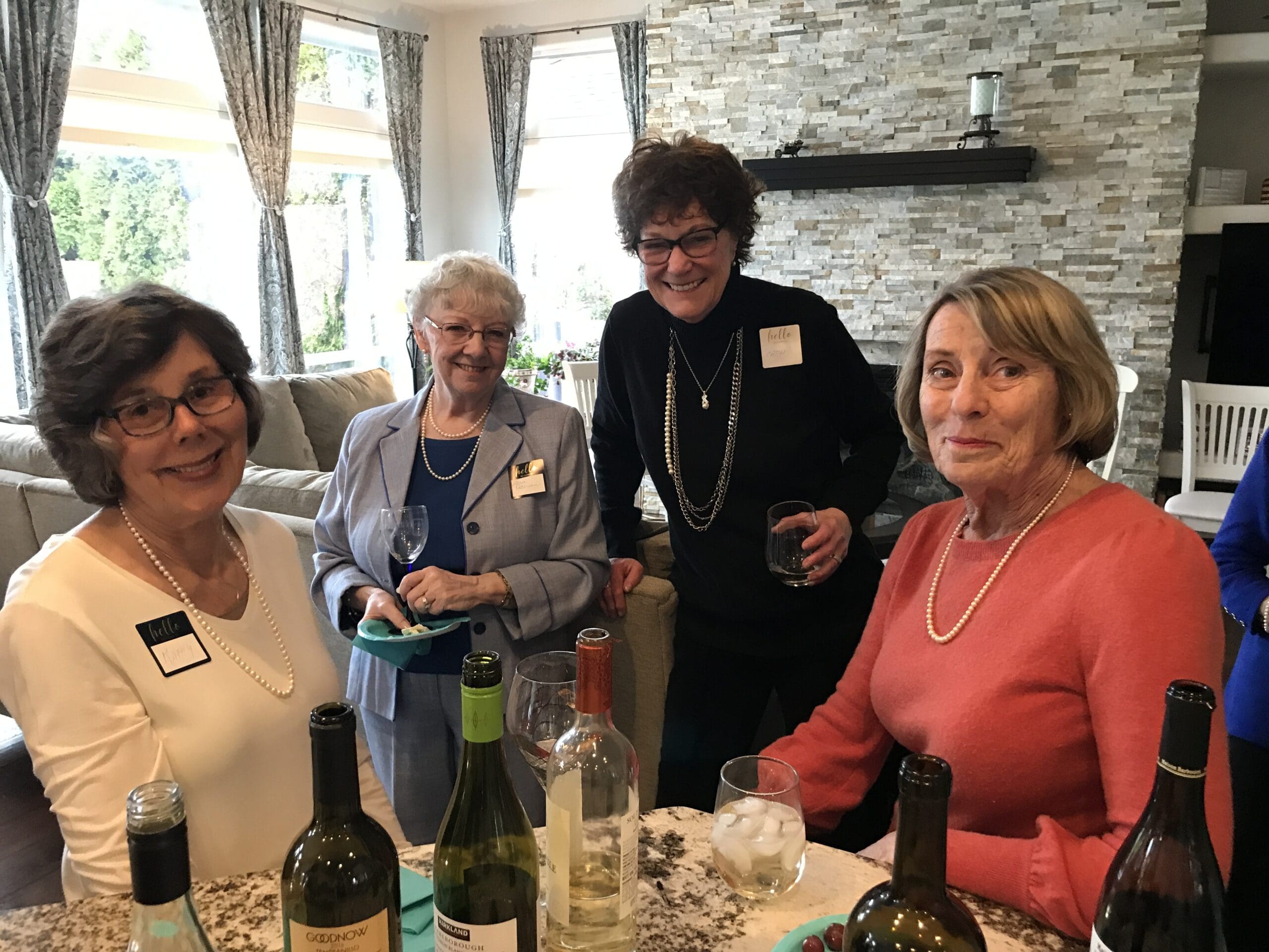 Marlene Ridley hosted 19 ladies in her lovely home Sip & Dip on March 23rd. This month’s theme was to wear pearls and the ladies all complied wearing their bangles from earrings to necklaces to bracelets, rings and brooches. A wonderful spread of appetizers was shared along with bottles of white, red and rose wines. There were a lot of smiles, laughs and catch up visits. If you’re interested in joining the fun, contact Brigitte Lemmerman.