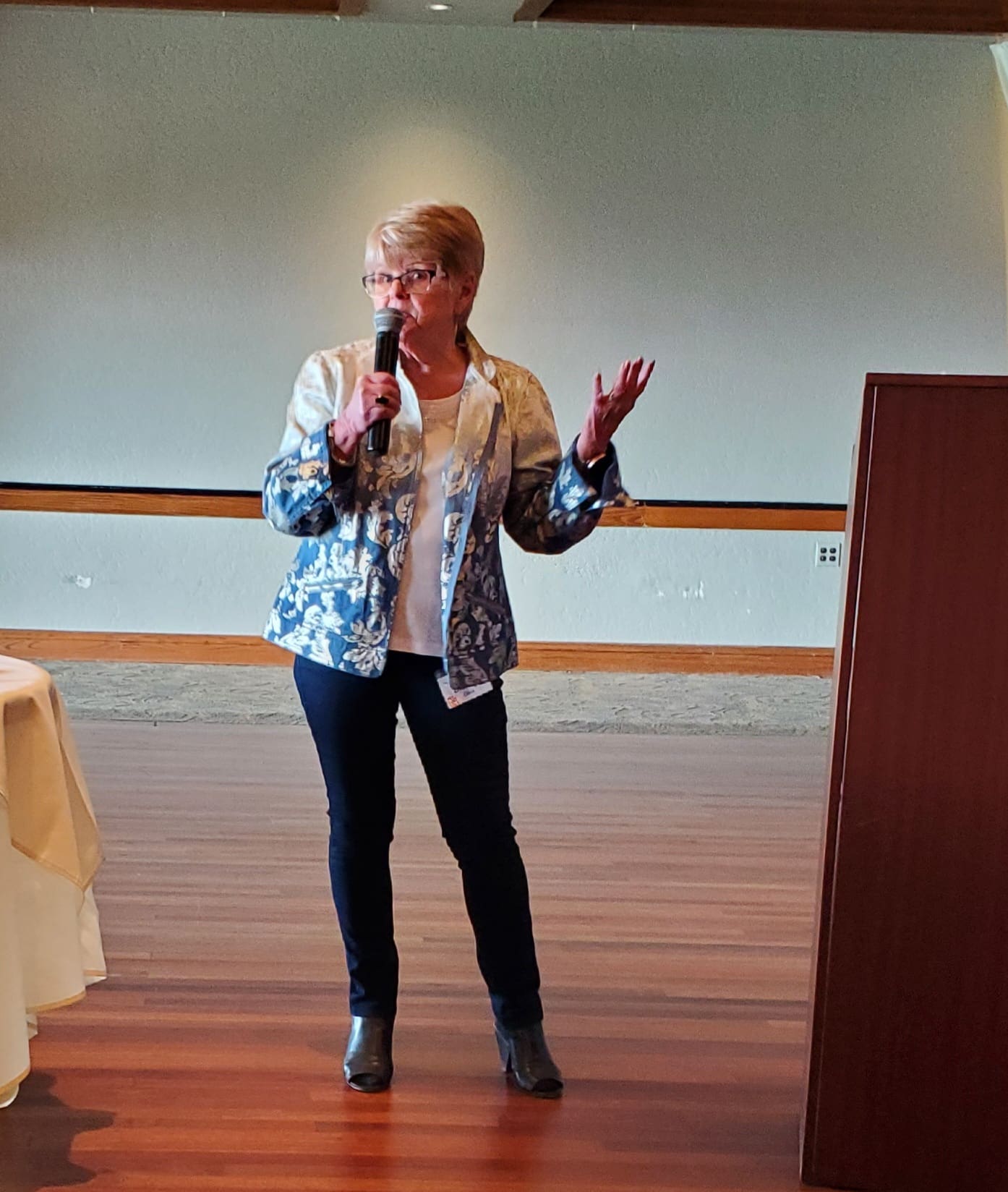 The luncheon opened with a fun game by Annette Godfrey. The tables were decorated with flowers and old photos donated by Bob Russell. Annette asked us to fine a certain photo such as a dog, house and so on. The first person to find a photo was given a candy bar. Multiple people where calling out and jumping up to shout that they had found the prized photo.