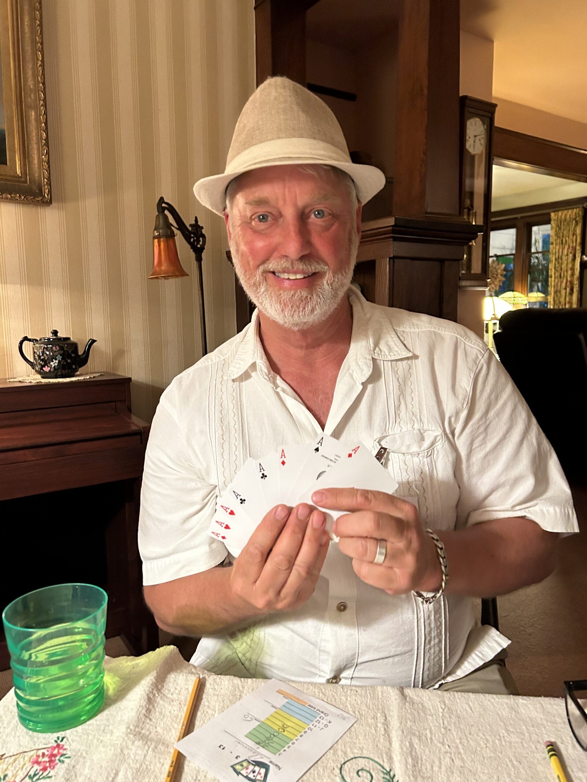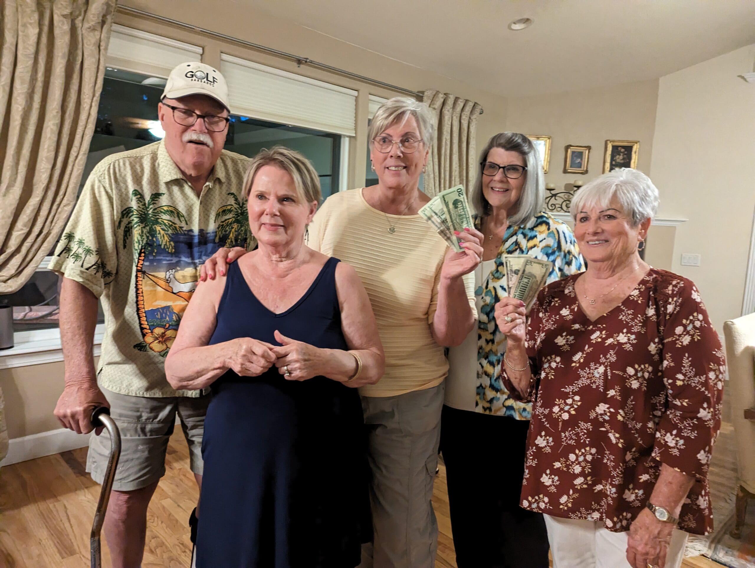 The May 20th 313 gatherings were hosted by Kay & Wayne Breithaupt, Virginia & Doug Felker and Annette & Dennis Godfrey. After happy hour, yummy dinners were enjoyed by all then the 313 card game took center stage. Low scores were across the board for winners tonight. At the Breithaupts Diane Sproat grabbed first place with 51 points, Michelle Harter with 52 points, Jack Westrum with 61 points and Sandi Smith with 76 points; Joyce Lingren set high score with 284 points. Charlie Allen scored 44 points for first place at the Felkers followed by hosts Doug with 70 and Virginia with 94 points apiece, then Brigitte Lemmerman with 109 and Nancy Erickson with 121 points. Birthday girl Lynn Baker was the low score with 50 points at the Godfreys followed by Steve Howard with 72 points, Aleli Lawson with 81 points and Jim Hyden with 91 points. First time attendee Henry Pulido was high scorer with 254 points. The next parties will be held on June 17th. Please let Aleli Lawson know if you and your partner are interested in attending.