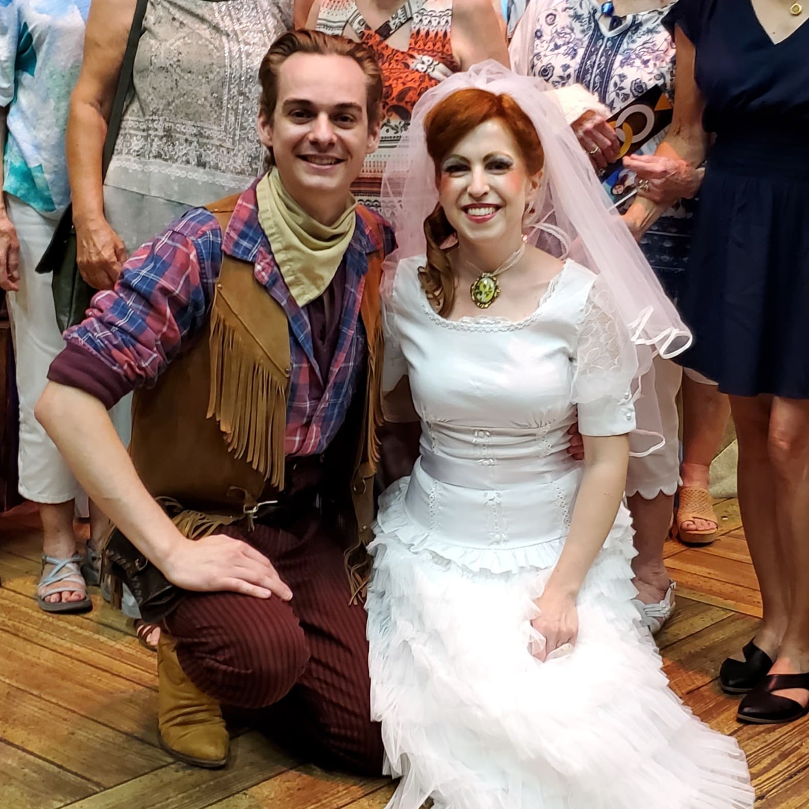 What a delightful little play! So far this year, this has been one of our favorite shows. Desperate Measures is a western musical loosely, I mean loosely, adapted from the Shakespeare play Measure for Measure. Twelve of us moseyed on down to Medford to watch the performance at the Collaborative Theater Project. Barbara Young brought her sister Wynn and niece Adi who were visiting from England. Husband Paul tagged along. The actors were outstanding; all played their parts well and in character. The production had witty writing, humor, live music and engaged the audience in the skits. The villain singled out Sharyn Close in his adlibbed routine. The singing was superb. It was a perfect way to spend a Sunday afternoon. Bravo CTP!