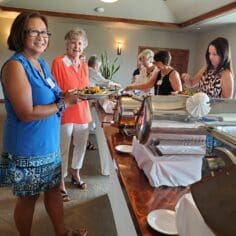 Forty women signed up for today’s luncheon. We saw some members that we haven’t seen in awhile. Jean Otteman returned and brought her sister Harriet. Debbie Mastroianni was also in attendance as a guest. Our presenter was a local author and speaker Sue DeMarinis.