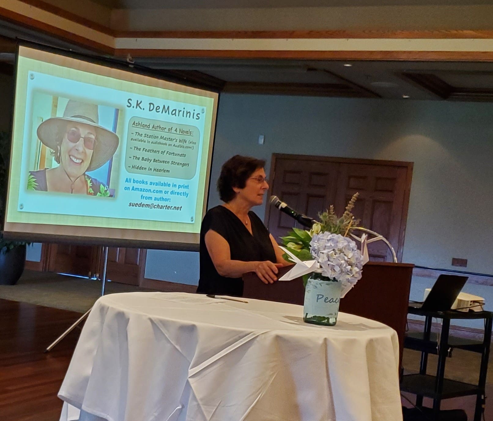 This is Sue’s fourth book and mesmerized the audience with her story telling. HIDDEN IN HAARLEM is based on a true and unbelievable story told to her by a ninety-five-year-old gentleman who lived in occupied Holland during WWII as a teenager.