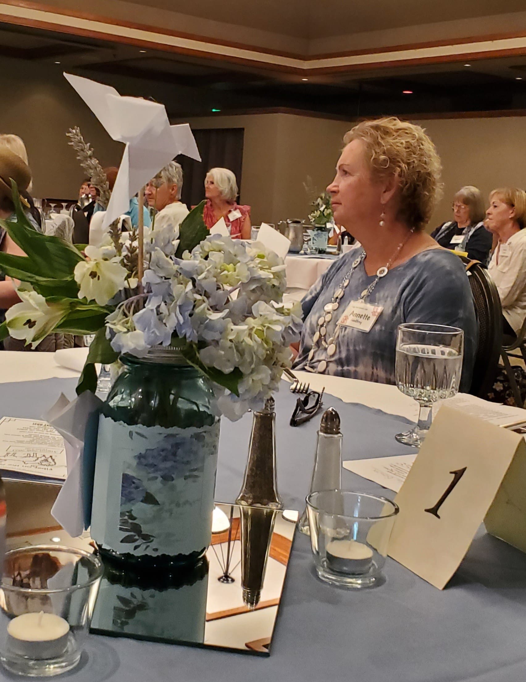 Forty women signed up for today’s luncheon. We saw some members that we haven’t seen in awhile. Jean Otteman returned and brought her sister Harriet. Debbie Mastroianni was also in attendance as a guest. Our presenter was a local author and speaker Sue DeMarinis.