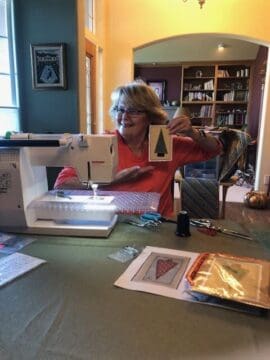In October, we met to learn how to make fabric cards. Sue Brown was our teacher and she shared samples of beautiful cards she has made. What a great use of fabric scraps. This was a lot of fun. For show & tell, I shared my new fabric basket. Kelly shared a couple of quilts, one new and one from the past. Linda demonstrated here new carrying case for traveling to classes. So cool! Enjoy the photos.
