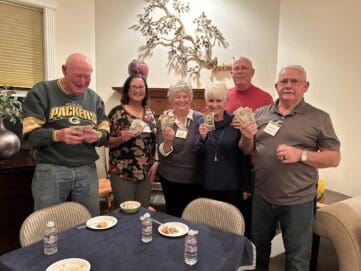 2023’s last Couples 3-13 gatherings were held on November 18th at the homes of Teresa & Charlie Allen, Joyce & Paul Lingren and Diane & Bill Sproat. Good food, socializing, and laughter were enjoyed by all. It seemed to be couples’ night as both husbands and wives won at the card game! At the Allen’s house, Paul Erickson scored low with 27 points followed by Virginia Felker at 74 points, then Doug Felker with 75 points, Martin Frey at 99 points and Nancy Erickson with 101 points. Winners at the Sproats’ saw lots of low scores under 100 as Lonnie Lawson posted his lowest score ever with 23 points, followed by Aleli Lawson at 39 points, Don Brown had 43 points, Bruce Lemmerman scored 67 points and Brigitte Lemmerman and newbie Linda McElmurry split 5th spot with tie scores of 95. Vick WIttenbrock had the high score of 174. Over at the Lingrens, the ladies were the winners, with Marilyn Westrum leading at 38 points, then Kay Breithaupt with 45 points, Michelle Harter at 54 points, Karla Hanan with 64 points and Sandi Smith with 100 points. Mitch Hanan topped the scores with 264 points. Sign-ups for 2024 have started and the new Couples 3-13 Committee will be sharing hosting duties and other information for the new year in the coming weeks.