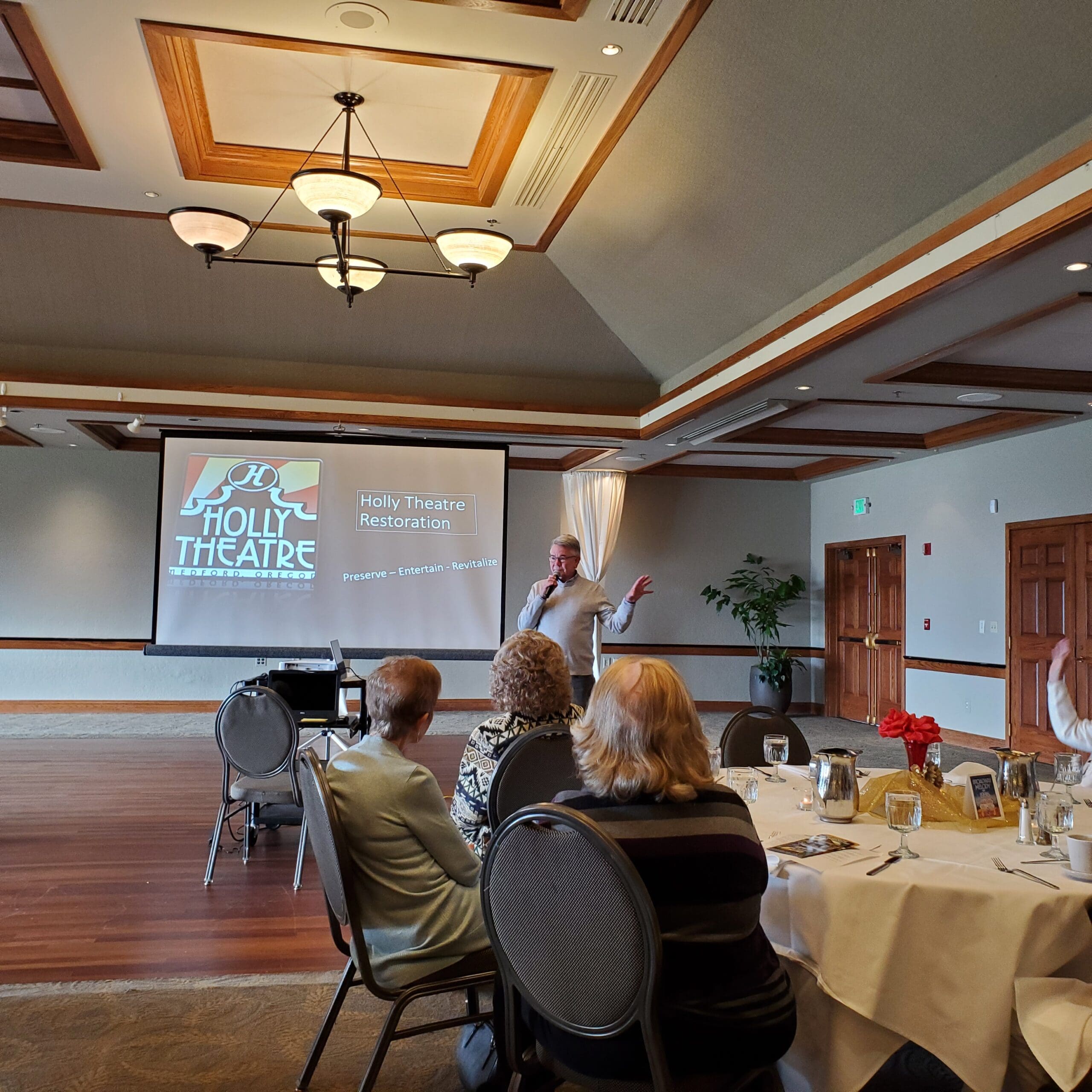 Our guest speaker for the February 21st luncheon was Ron McUne, Co-chair of the Holly Restoration Committee. The Historic Holly Theatre opened in 1930. At the time, it was the largest movie palace in Medford and the first in this area designed to show”talking” pictures. The Holly closed in 1986 and was slated for demolition in the 1990's. In 1998 the Holly Theatre was placed on the National Register of Historic Places. It remained empty and was condemned. In 2011, the non-profit JPR Foundation purchased the Holly with the intention of restoring it for musical venues and community programs. Restoration work still continues today, but its completion, and an opening date, are now in sight. Projects like these help attract businesses to the area and re-vitalize the community. In October of 2015 the EPWC went on a tour of the building. A show of hands demonstrated how many of the current members have not toured the theater. We hope to do another tour in the near future. Stay tuned.