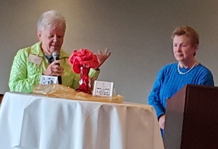 The luncheon began with Viki Brown giving a wonderful tribute to Annette Godfrey for all her many contributions to the club. Annette's creative talents provided the table decorations for our luncheons throughout the years as well as putting together our artsy directories.