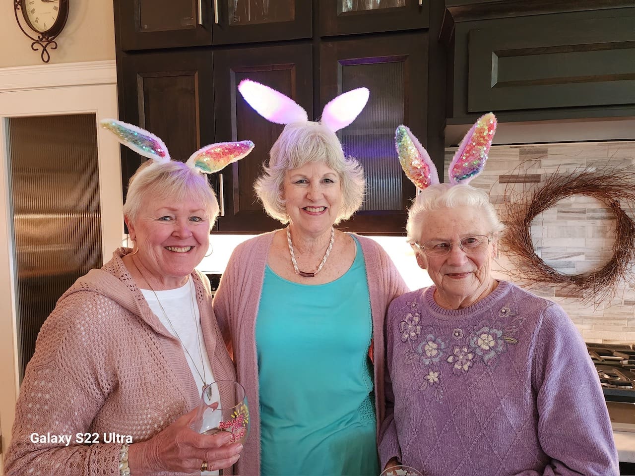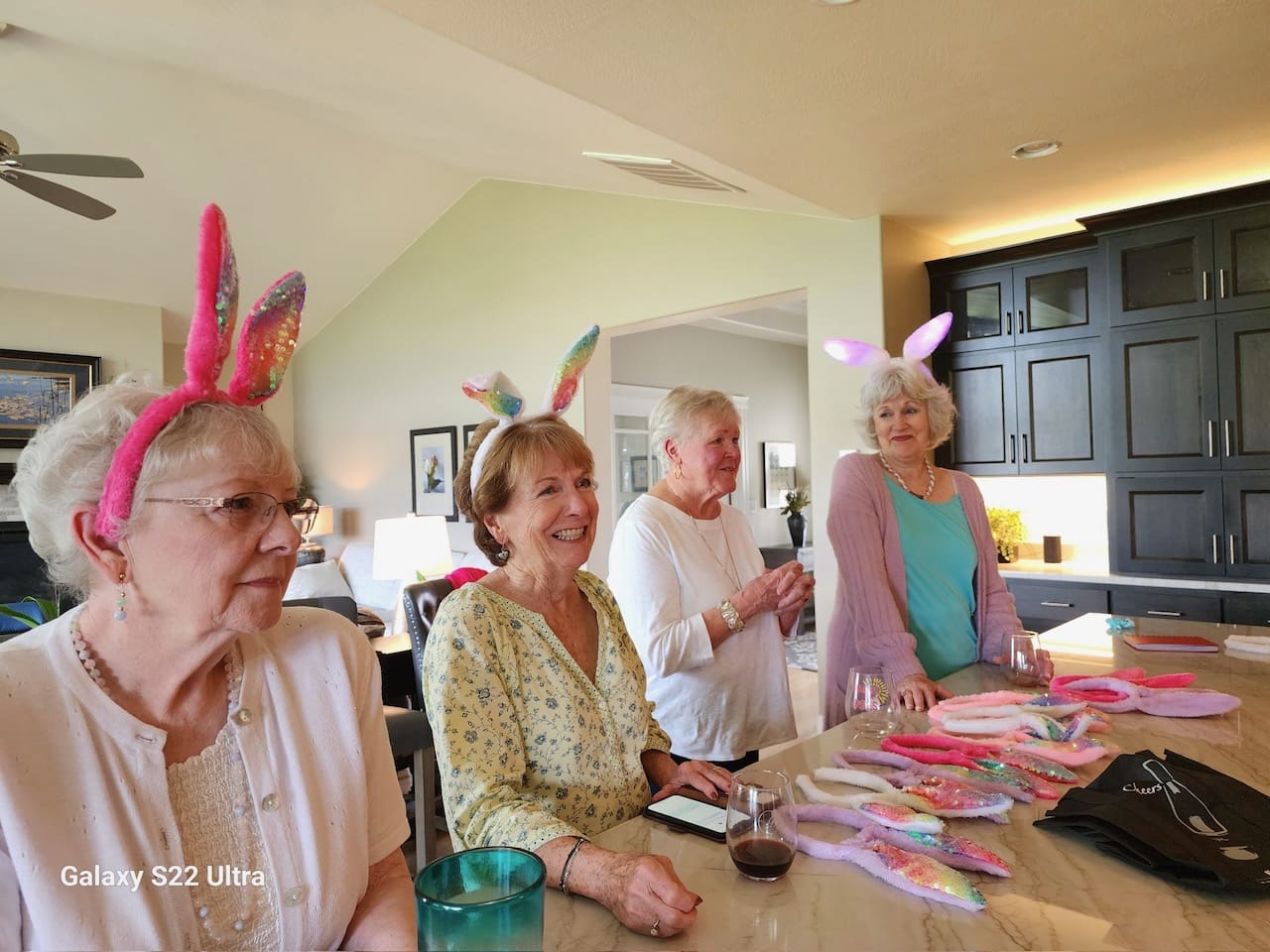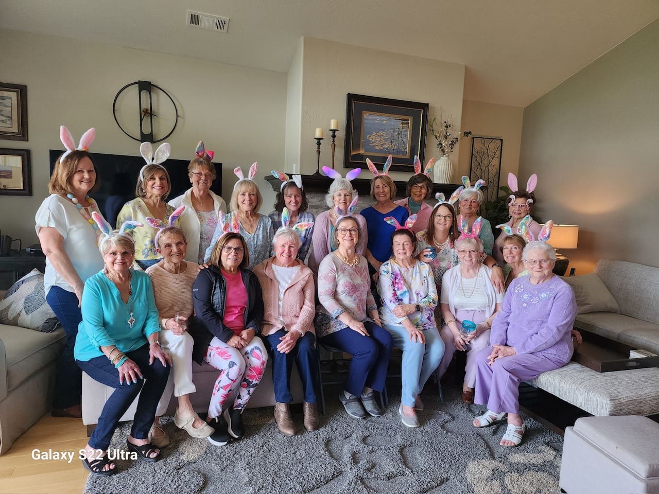How do you get a whole group of EPWC members to turn giddy and silly? Answer is: give them some wine and a rabbit ears headband and put them in a room together. Carolyn Hein served as host for the April, 2024 Sip and Dip gathering and the 20 guests turned out in their best spring colors. Lori Miles provided the rabbit ears for the group which added lots of fun and great material for photos. A big thanks to Carolyn for hosting and to Lori for the “ears”.