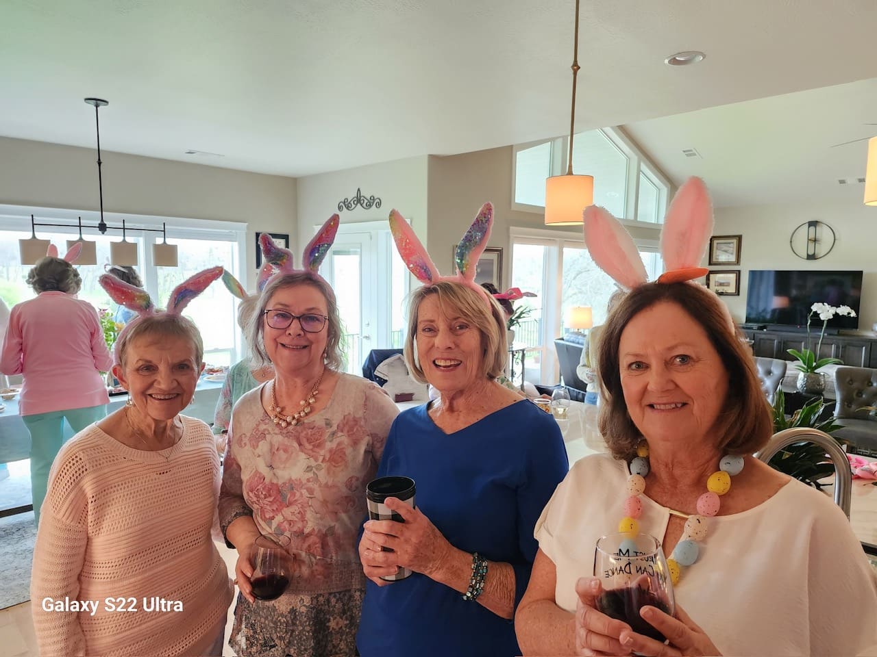 How do you get a whole group of EPWC members to turn giddy and silly? Answer is: give them some wine and a rabbit ears headband and put them in a room together. Carolyn Hein served as host for the April, 2024 Sip and Dip gathering and the 20 guests turned out in their best spring colors. Lori Miles provided the rabbit ears for the group which added lots of fun and great material for photos. A big thanks to Carolyn for hosting and to Lori for the “ears”.