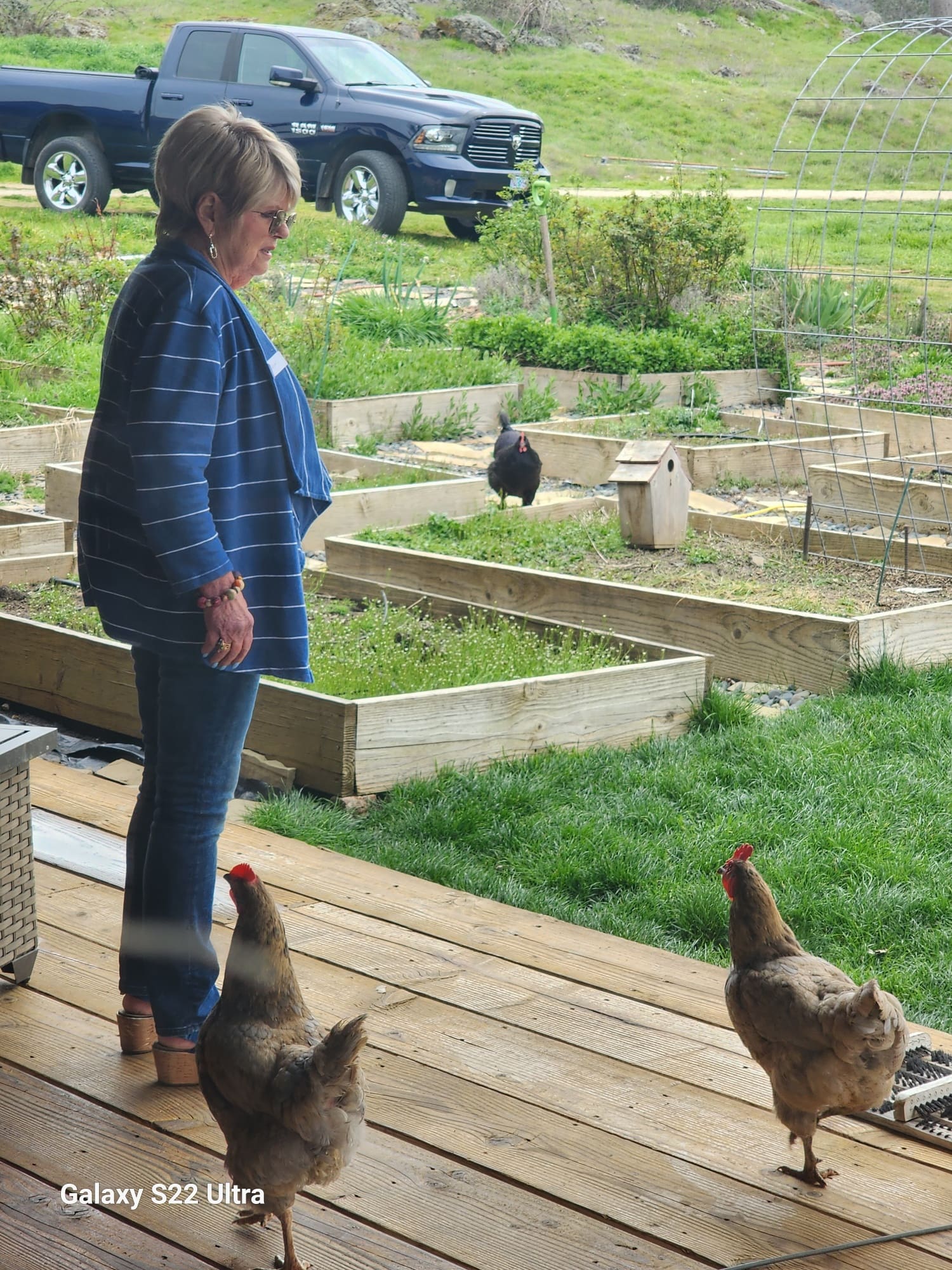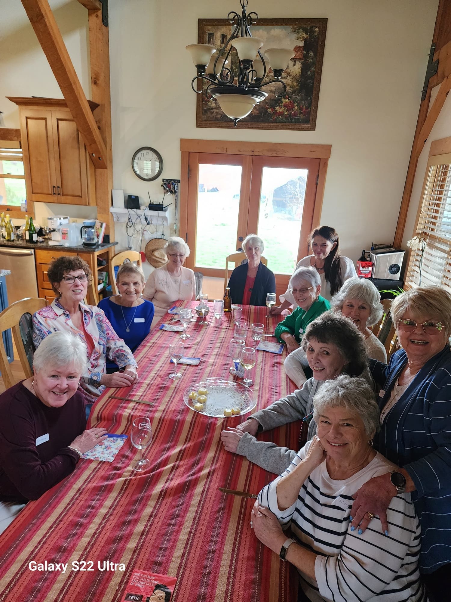 The enthusiastic group of Eat and Greet participants headed out to the rural home of Lorissa Nichols for some fun in the country and a great lunch. Everyone enjoyed the beautiful weather, lovely views and wonderful food in a special rural setting. Sharyn enjoyed the chickens and everyone enjoyed the great food and company. Thanks to Lori for hosting.
