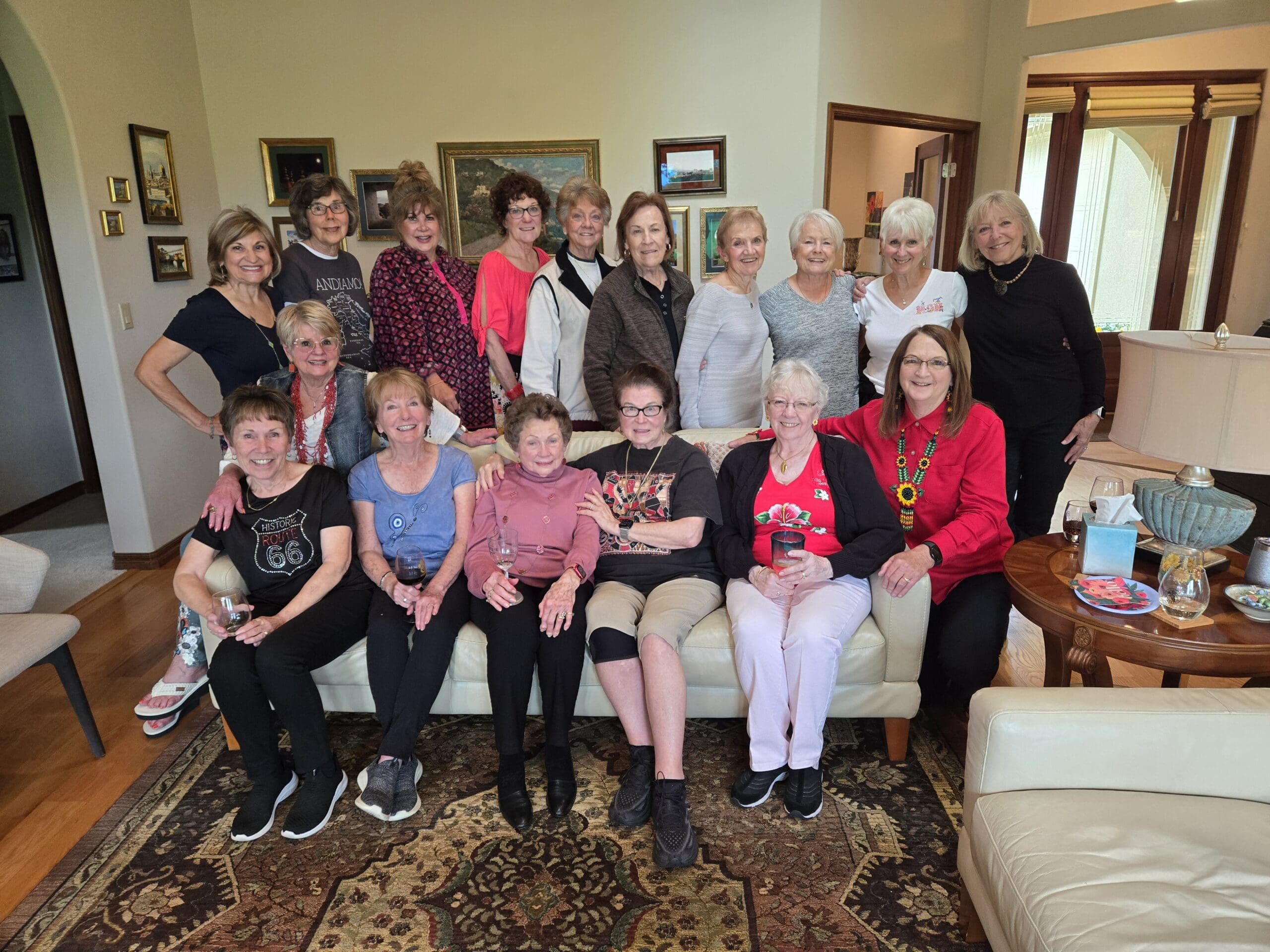 17 members gathered at the home of Susan Watson for some food and fun at April Sip and Dip. The theme was clothing or accessories that were souvenirs from your personal travels. Lots of fun and colorful items made an appearance and invited some reminiscing about the trips they were purchased on. Susan elected to award a prize to the "best" entry and Cathi Soreng was the lucky winner. This group continues to be very popular and always lots of fun. Thanks to Susan for hosting and to all the guests for their food and wine contributions. Thanks to Brigitte for coordinating. See you in May.