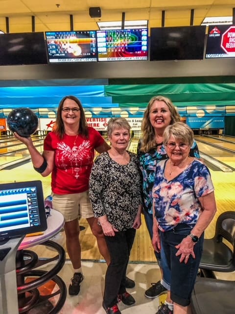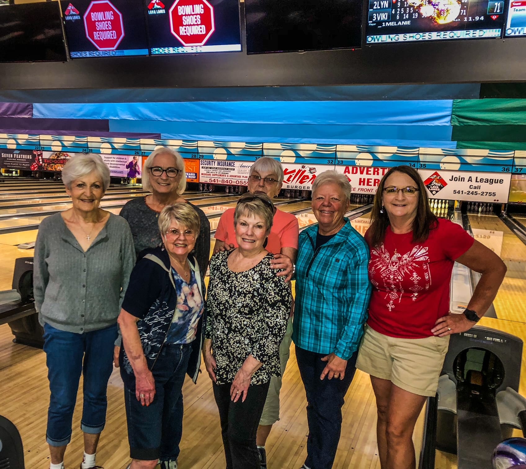 Eight eager EPWC bowlers descended on Lava Lanes in Medford for two fun games of bowling today. Some strikes, some spares, some gutter balls, but always smiles and cheers for each other. A big thanks to Lori Miles for organizing the group and to ChrisAnn Parsons for the great photos. We’ll see you next month on the first Monday at 1:00 pm.