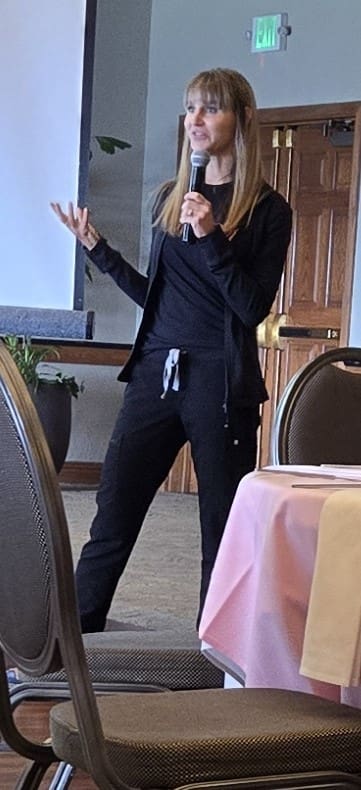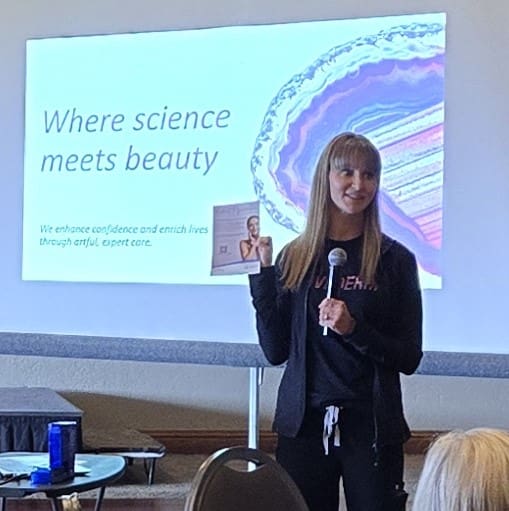 You Glow girl! Abby Coats P.A. from renew Medical Spa was our guest speaker for the August 2024 Luncheon. We all learned a little something about including our skin in our health care maintenance and overall well-being. Forty-one (41) members signed up for a buffet of beef, veggies, rice, salad and fruit, plus a very tall dessert. Abby's presentation included pop beauty quizzes where members won full size skin care products. Kris Howard was the winner of a drawing for a huge bag of products. We all went home with travel size bags of lip balm, cleanser, sunscreen and a flier for a complimentary facial treatment at the Spa.