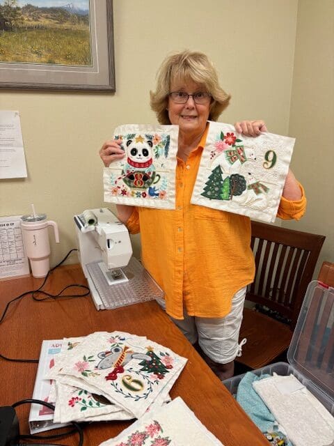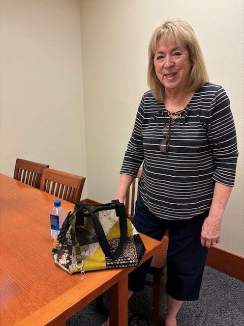 The Piecemakers met on September 4, 2024 at the Eagle Point Library. We shared some show and tells first. Sue brought her completed bag. She added pockets inside and a strap to hold keys. Very clever! Sandra brought the first quilt she ever made, back in high school! She had used cardboard patterns to cut out the shapes for the quilt. The quilt was in very good shape. Linda brought 8 of her finished blocks for her Advent calendar quilt. They are just gorgeous.