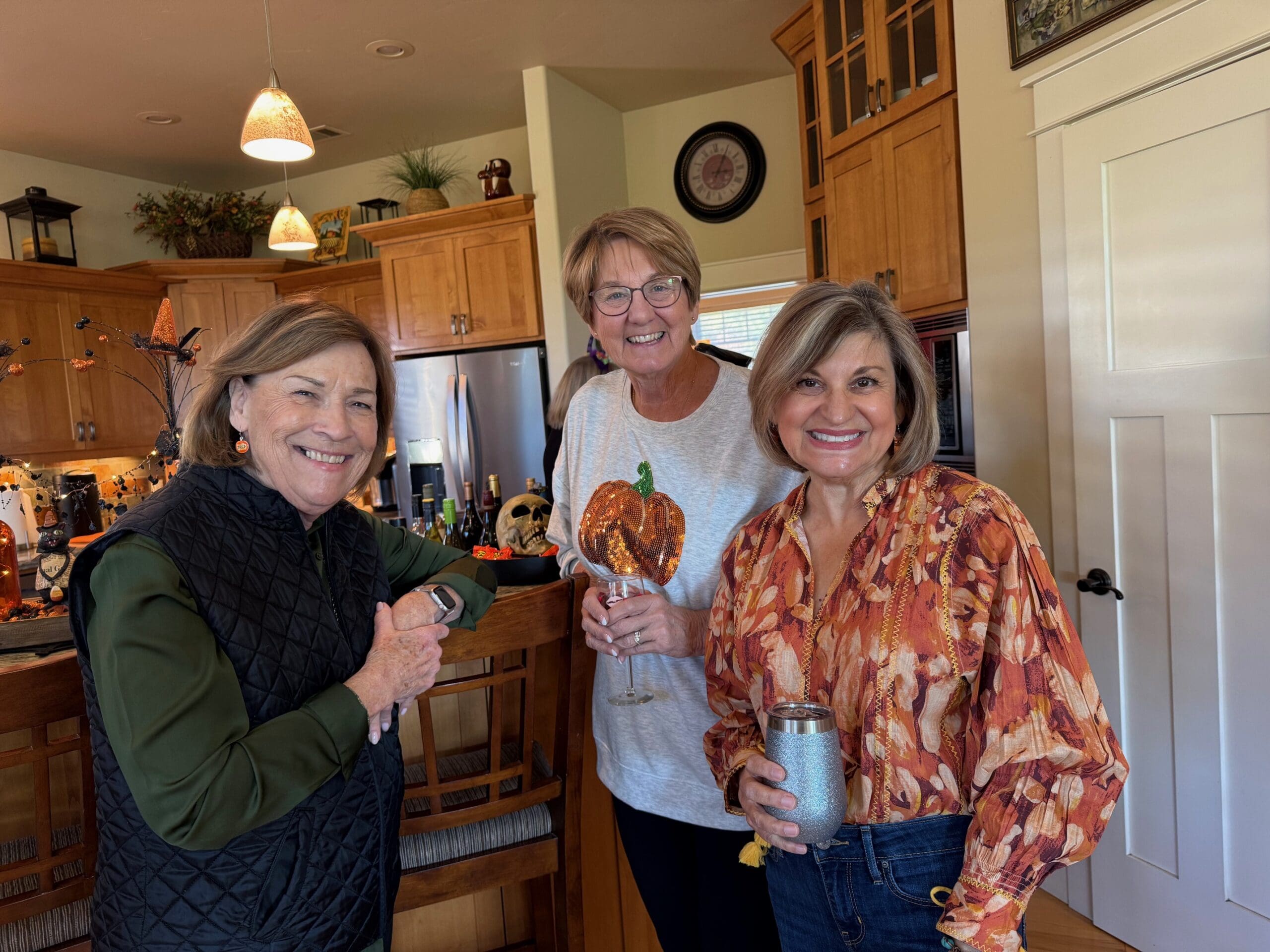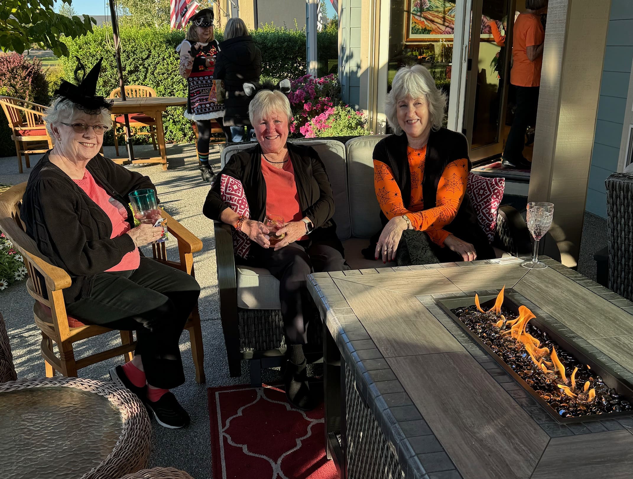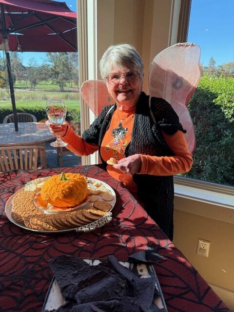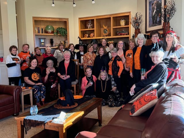 Kris Howard, the queen of Halloween, hosted 25 EPWC members for October Sip and Dip. Kris is famous for her elaborate Halloween decorating in her home and her guests helped out by dressing up as a variety of crazy characters. Appetizers also had a Halloween theme with pumpkin-shaped cheese balls, a Frankenstein guacamole mold with black chips, tarantula deviled eggs and lots of other fun goodies. It was a beautiful day so we were able to spill out onto the patio and enjoy the golf course view and the cozy fire pit. We all participated in a Halloween song trivia game and remembered more than we imagined about those old tunes. Good wine and relaxed socializing rounded out the afternoon. Thanks to Kris for the great gathering and to all the guests for the wine, goodies and costumes. We’ll see you next month at the Butte Creek Mill for a special Sip and Dip.