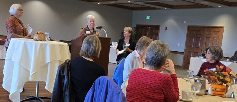 Holey Moley! It was a shopper’s delight! We had a record turn-out for the October 16th EPWC Members Market Luncheon. Displaying their wares were Carolyn Hein, Bonnie Scriba, Dora Moore, Mary Harper, Dianne Mihocko, Renate Gyuro, Sandee Tripp, Shelby Shannon, Kris Eriksen, and the Eagle Point Library. Who knew that we had so many talented club members. I think everyone went home with a little wonderful something. A successful silent auction for the pumpkin table decorations yielded additional funds for future luncheon tabletops.