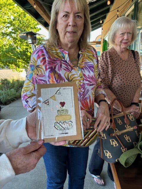 The Piecemakers had a fun October meeting. We had lunch at Luna’s Mexican Cuisine and then did a little bit of shopping at the Sunshine Quilt Shoppe. Several of us had show and tells. Kelly & I showed off our new bags. Sue had three items she made. There is a beautiful table runner, a creative card, and an adorable hot pad. We talked about the next steps for the quilt of valor we are making together. We will work on it at the library in November.