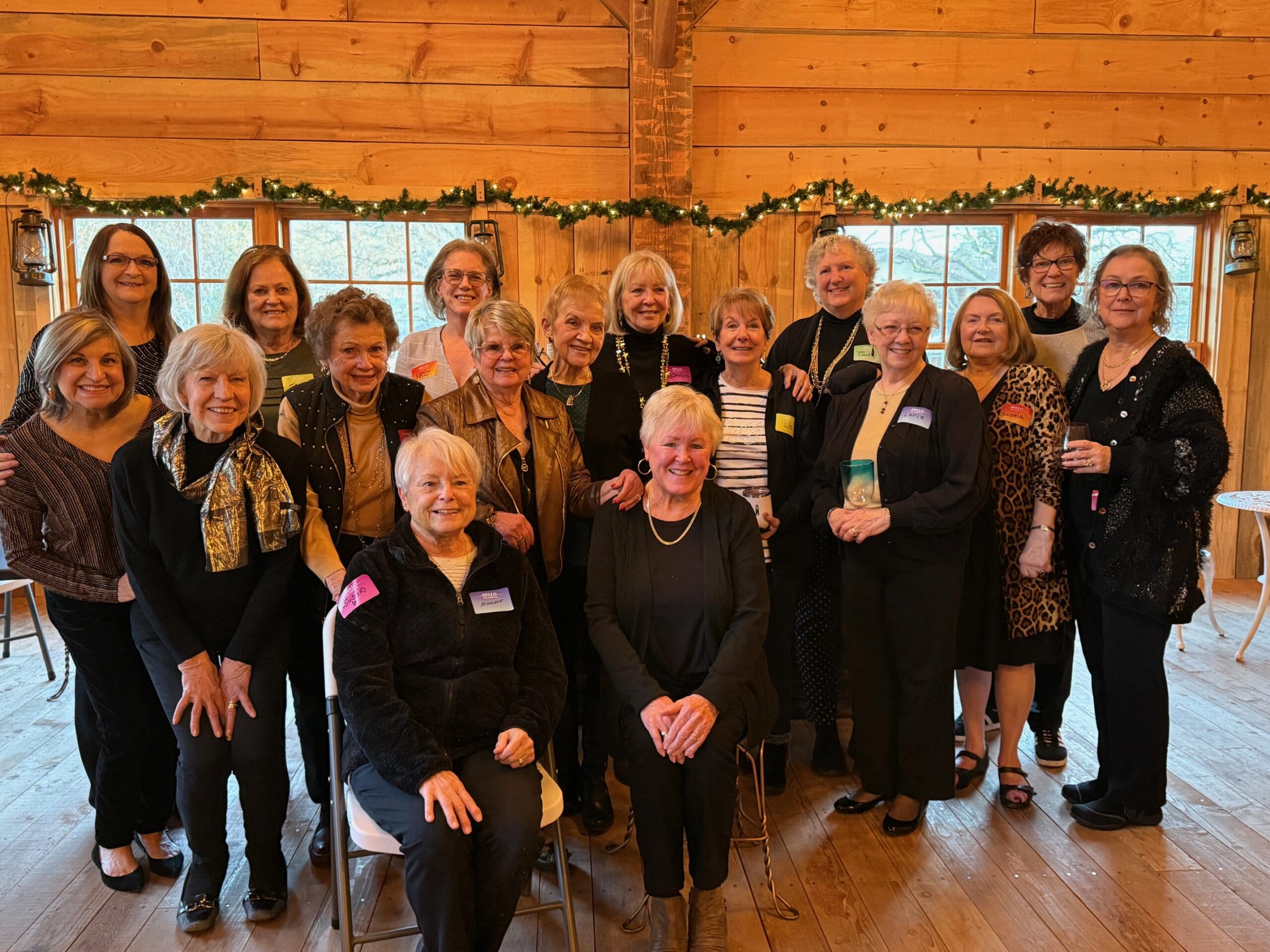 We started the new year off with a theme of black and gold and that brought out lots of jewelry, sparkly tops and shimmering scarves to brighten up a cold, gray day. Sandi Smith was host for this month and unfortunately she had a bad cold so could not attend. She did provide all of the plates, napkins, tables and tablecloths and stopped in to make sure that everything got set up properly. A big thanks to Sandi and her husband, Mike. As usual there was lots of great finger food and a nice assortment of wine to enjoy. The group was a little smaller this month (20 people) due to numerous people being ill with colds and coughs, but there was lots of laughter and good conversation. Dianne Mihocko will be the host for February and more details on that will come out in an e-mail from group coordinator, Brigitte Lemmerman. Thanks, Brigitte. Brigitte and Viki are not in the photo as we were both taking pictures. Have a healthy month.