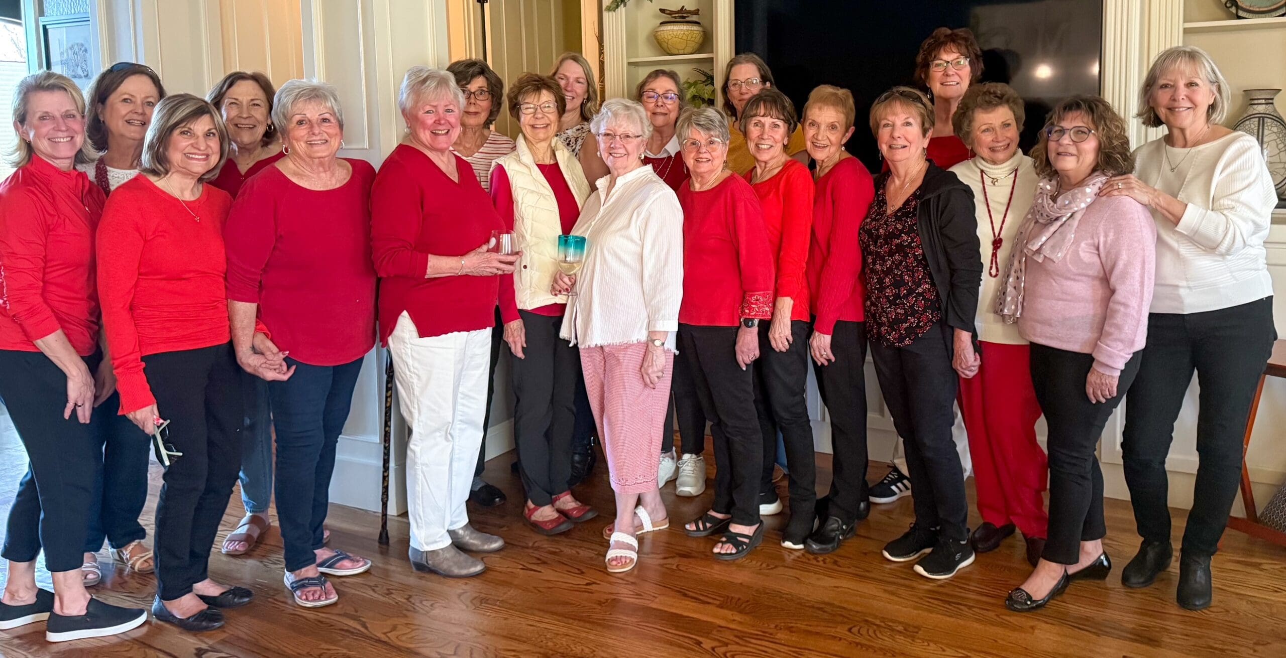 Dianne Mihocko opened her home to 22 guests to enjoy a late afternoon gathering of wine, food and conversation at February, 2025, Sip and Dip. The room was bright with pretty red tops and pants and some welcome sunshine. This group celebrated its 3rd anniversary in January and has continued to be well-attended. When the group started, 12-16 people was the typical attendance and now it is always over 20 people and over 30 at a few gatherings held at the Butte Creek Mill. Thanks to Dianne for hosting and Brigitte for coordinating. Next month wil feature a St. Patrick’s Day theme and will be hosted by Viki Brown at the Butte Creek Mill on March 27. No limits on attendance, so plan to join in the fun and bring a friend.