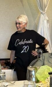 Almost 100 members, former members and guests participated in a historic event for the EPWC on June 18, 2025. The Club planned a fun party to celebrate 20 wonerful years as a thriving social club in Eagle Point. Six of the nine past and present presidents of the Club were on hand to enjoy the continued success of this wonderful organization and were recognized with a small gif for their service (Janet Siedlecki, Maxine Williams, Dianne Mihocko, Sharyn Close, Viki Brown, Liz Crossman.) A rousing dance routine led by Teresa Allen showed some well-practiced moves to the song “Celebrate”. Margaritas were available to purchase to add to the festive mood. A fajita bar and fruit platter made a casual and yummy luncheon followed by pieces of special anniversary cake. Big thanks to Brigitte Lemmerman for months of planning the event. Thanks to Teresa Allen and her dance troupe for all the rehearsals and the great performance. Thanks to Mary Harper for all the festive decorations. Thanks to all who contributed in some way to the fun.