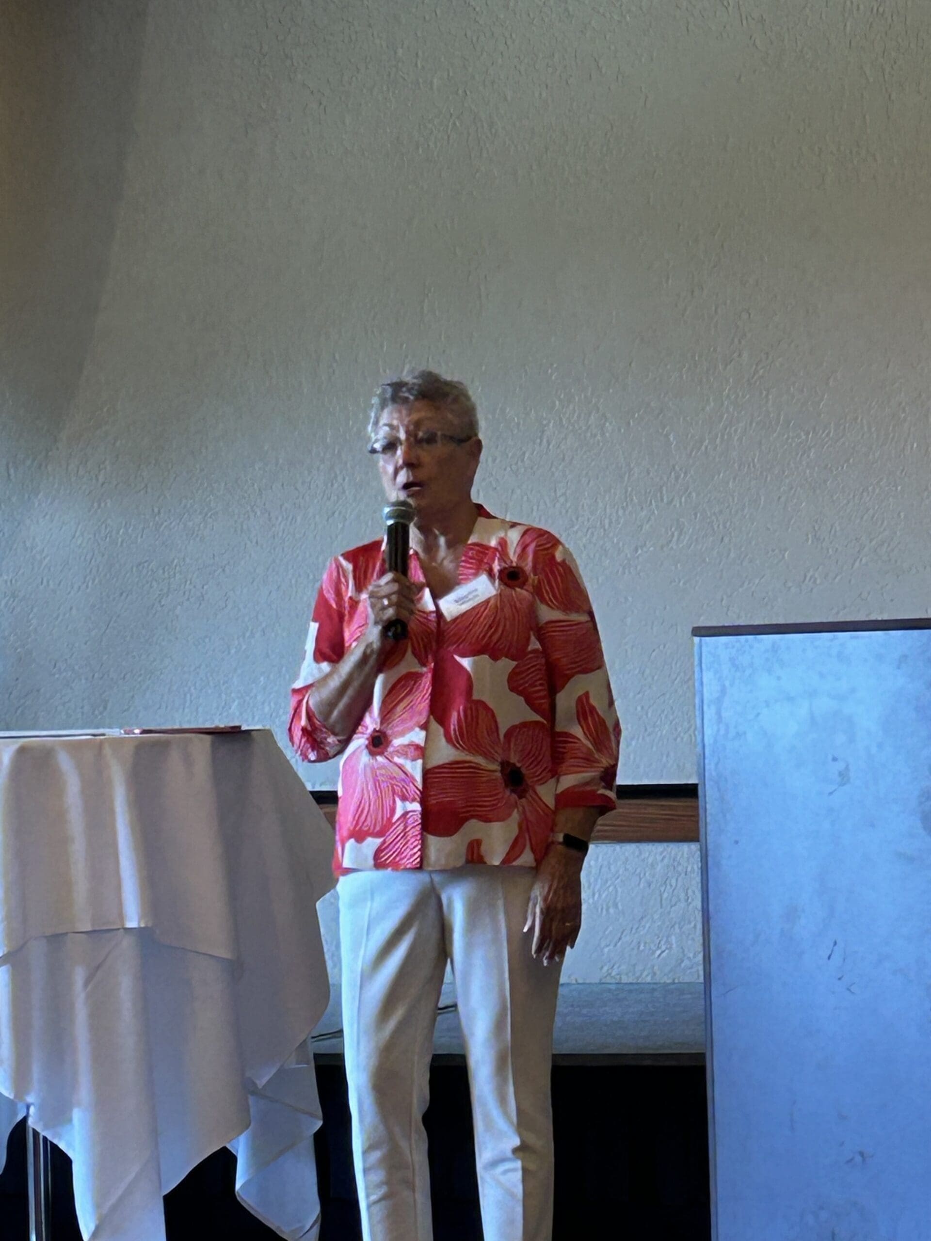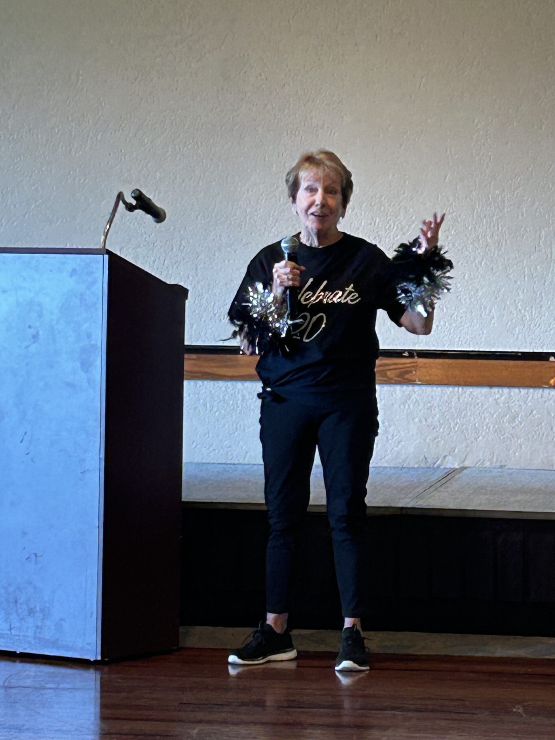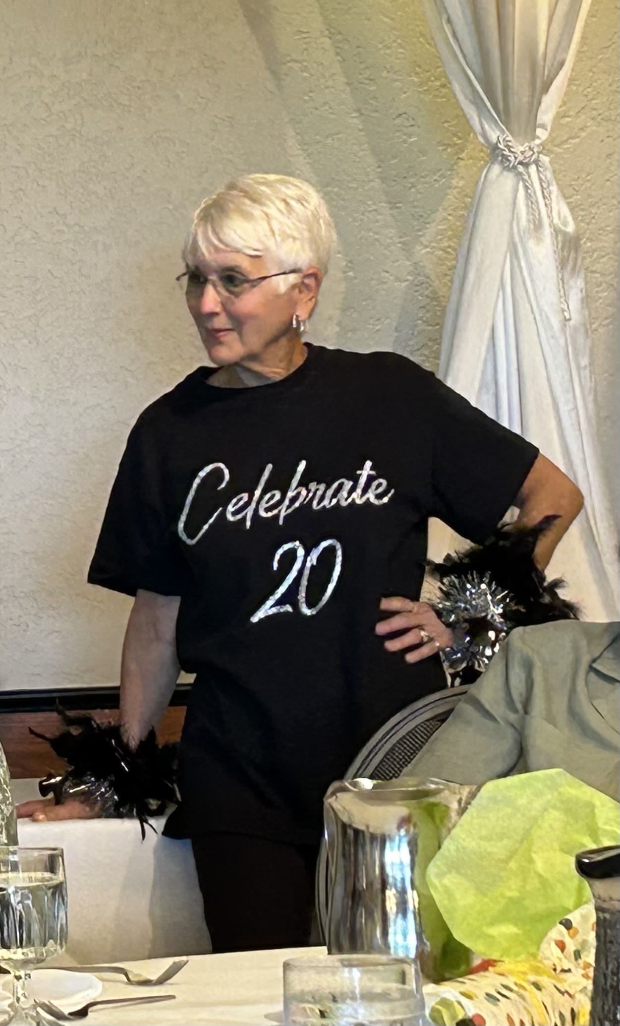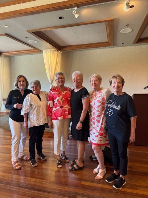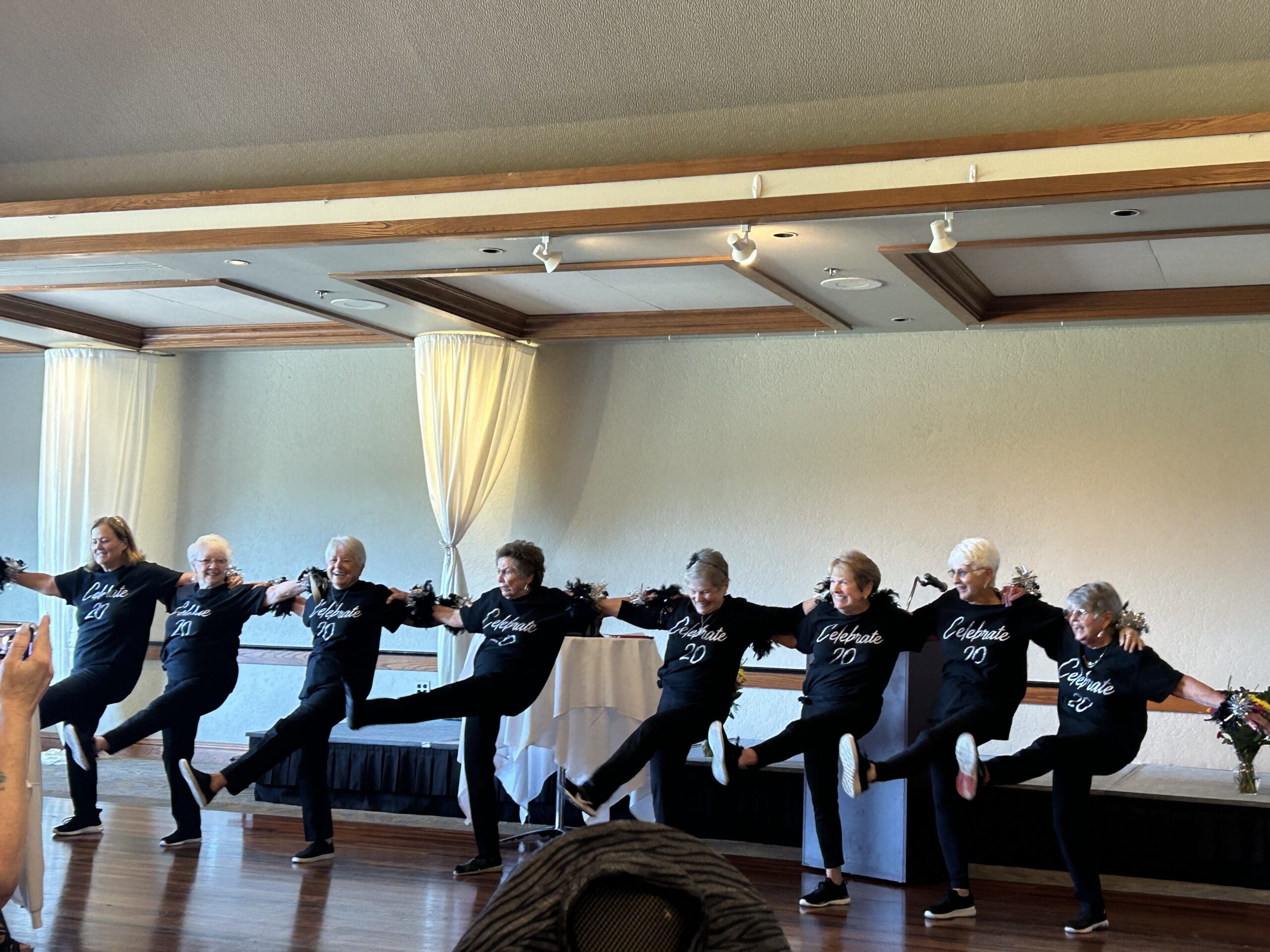 Almost 100 members, former members and guests participated in a historic event for the EPWC on June 18, 2025. The Club planned a fun party to celebrate 20 wonerful years as a thriving social club in Eagle Point. Six of the nine past and present presidents of the Club were on hand to enjoy the continued success of this wonderful organization and were recognized with a small gif for their service (Janet Siedlecki, Maxine Williams, Dianne Mihocko, Sharyn Close, Viki Brown, Liz Crossman.) A rousing dance routine led by Teresa Allen showed some well-practiced moves to the song “Celebrate”. Margaritas were available to purchase to add to the festive mood. A fajita bar and fruit platter made a casual and yummy luncheon followed by pieces of special anniversary cake. Big thanks to Brigitte Lemmerman for months of planning the event. Thanks to Teresa Allen and her dance troupe for all the rehearsals and the great performance. Thanks to Mary Harper for all the festive decorations. Thanks to all who contributed in some way to the fun.