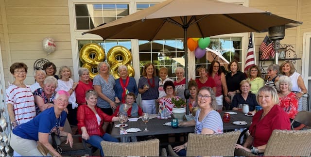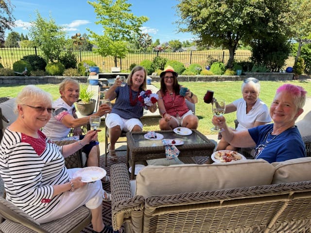 Barbara Schmaltz opened her home and beautiful back yard to 26 EPWC members for an afternoon of Sip and Dip enjoyment. The theme was red, white and blue and everybody showed off their colors. Ida Tolmie was celebrated for reaching her 88th birthday and always being the life of the party. Congratulations, Ida. A big thanks to Barbara for hosting.