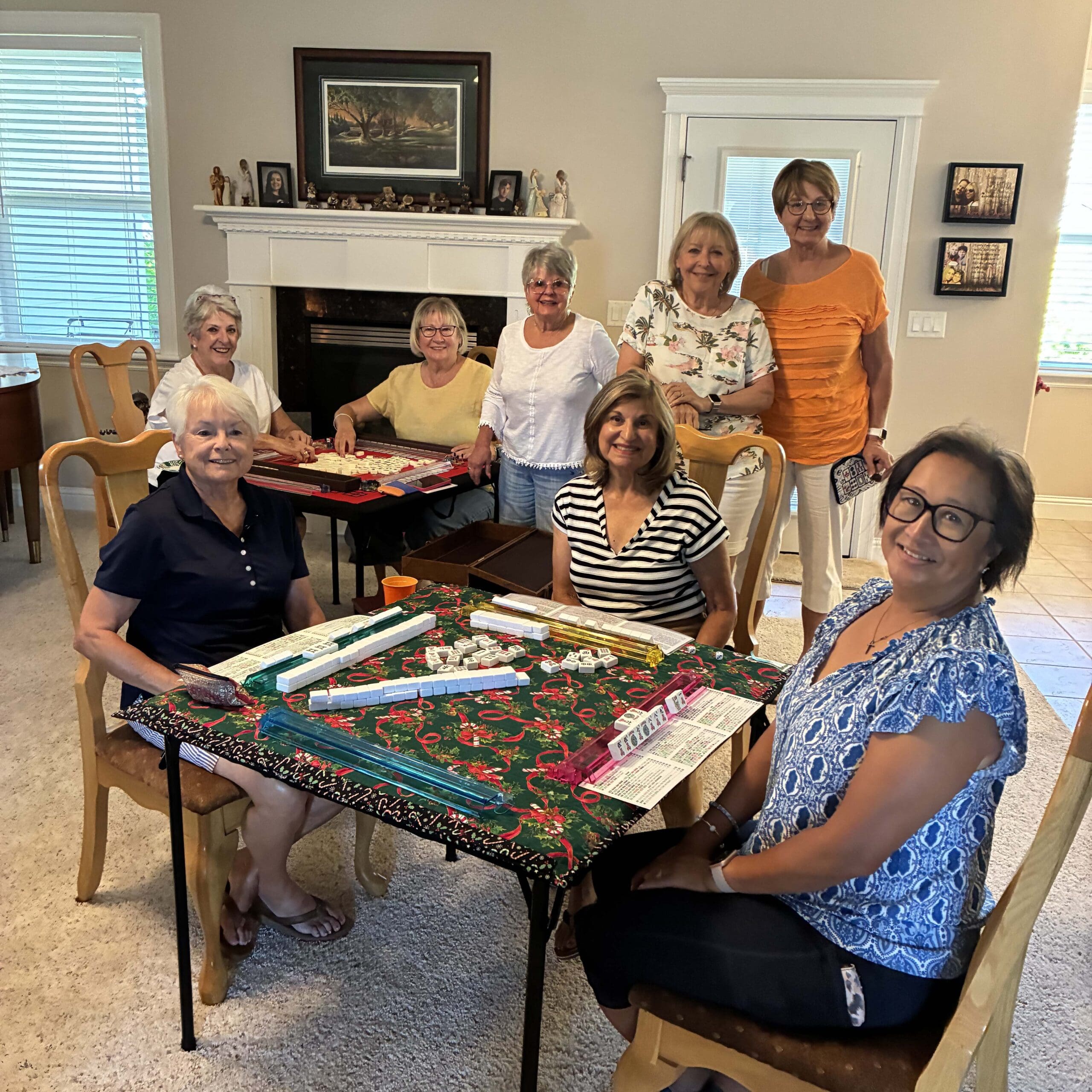 Attached is a picture of some who played a few weeks ago. The players are from left to right: Marlene, Joyce, Gail, Sharyn, Susie, Carolyn, Susan, and Aleli. They are a few of the great women we enjoy playing Mahjong with as often as we can.