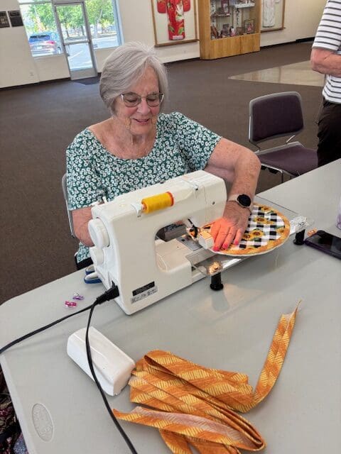 Our September meeting was held at our new hangout, the Ashpole Community Center. This facility is really working out well for our larger group. Our sewing project/lesson was making a tortilla warmer. Dora was our instructor and we had quite a large group of us making the warmers. Others worked on UFO's. It is always fascinating to see the variety in the fabrics each of us select for our projects. It is lots of fun and they all end up looking fantastic.