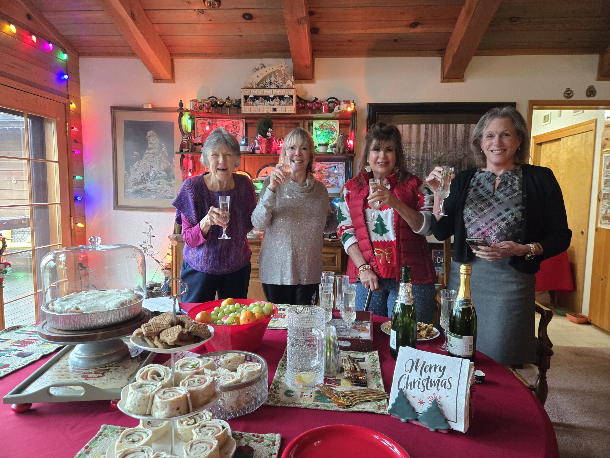 Our last book club meeting of the year was held at Judith Fonarow's charming farm house. It was a combination discussion of the book Verity by Colleen Hoover and a Christmas celebration. Judith went all out with fabulous food, champagne and English poppers. The event was concluded with a round of silly jokes and paper crowns.
