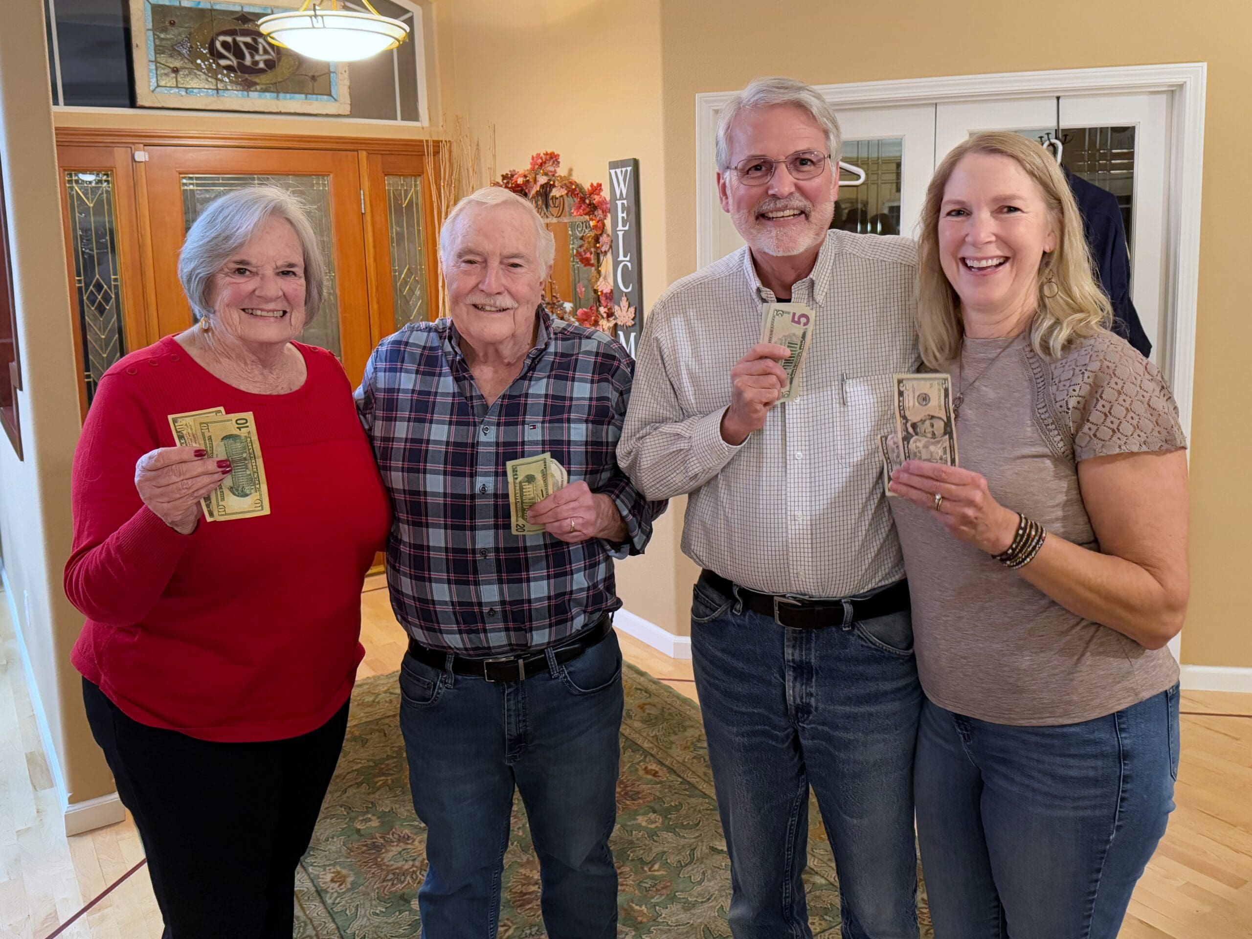 Members gathered at the home of Denise and Tracey Fikes on November 17 for a fun “We can’t wait for Thanksgiving” themed potluck dinner (including turkey, ham, delicious sides and pumpkin pie cake!) The group enjoyed lively conversation and our always fun card game. Winners for the evening were Lynn Baker, Vince McElmurry, Charlie Allen, and Denise Fikes.