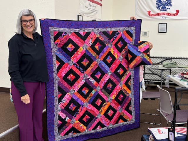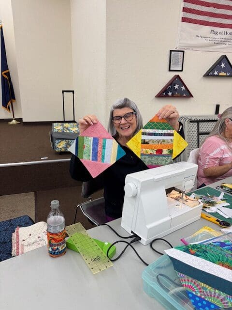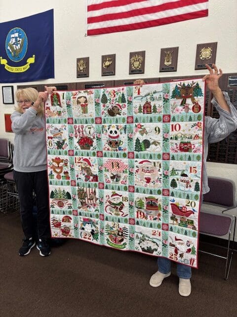 On November 5, 2025 the Piecemakers met at the Ashpole center to learn how to make the Donna Jordan Scrappy Lattice Quilt. Well, at least the block. There were three of us that completed at least one block. Linda, Kelly & Joyce show off their blocks in the pictures. As always, we had a number of show and tell items. Too many to show them all so I picked something from everyone. We made plans for our December shop & lunch day and also came up with ideas for projects in 2026. It was a fun and productive meeting.